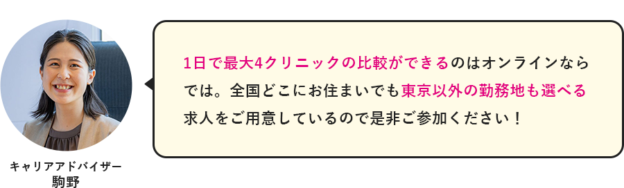 未経験の方も活躍しており美容皮膚科の知識やスキルを幅広く習得したいという方にぴったりなクリニックです。