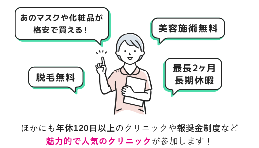 プライベートの充実が叶うだけでなく、美容看護師として高い接遇レベルや技術の習得が可能です!